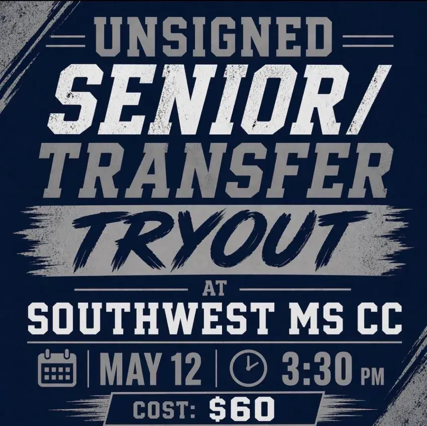 The Southwest Mississippi C.C. baseball program will host an open tryout for unsigned seniors and transfer players at 3:30 p.m. on Tuesday, May 12.