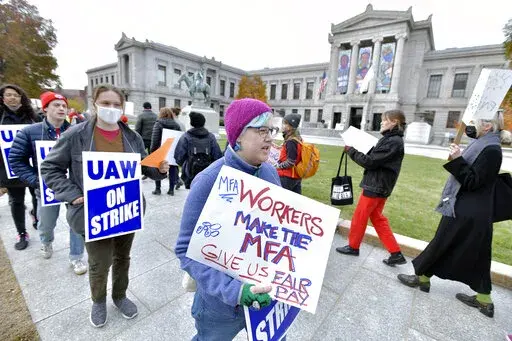 BOSTON (AP) — Pandemic-weary workers at Boston’s Museum of Fine Arts went on a one-day strike Wednesday over stalled contract negotiations with management, the latest strike amid an monthslong uptick in labor action nationwide.