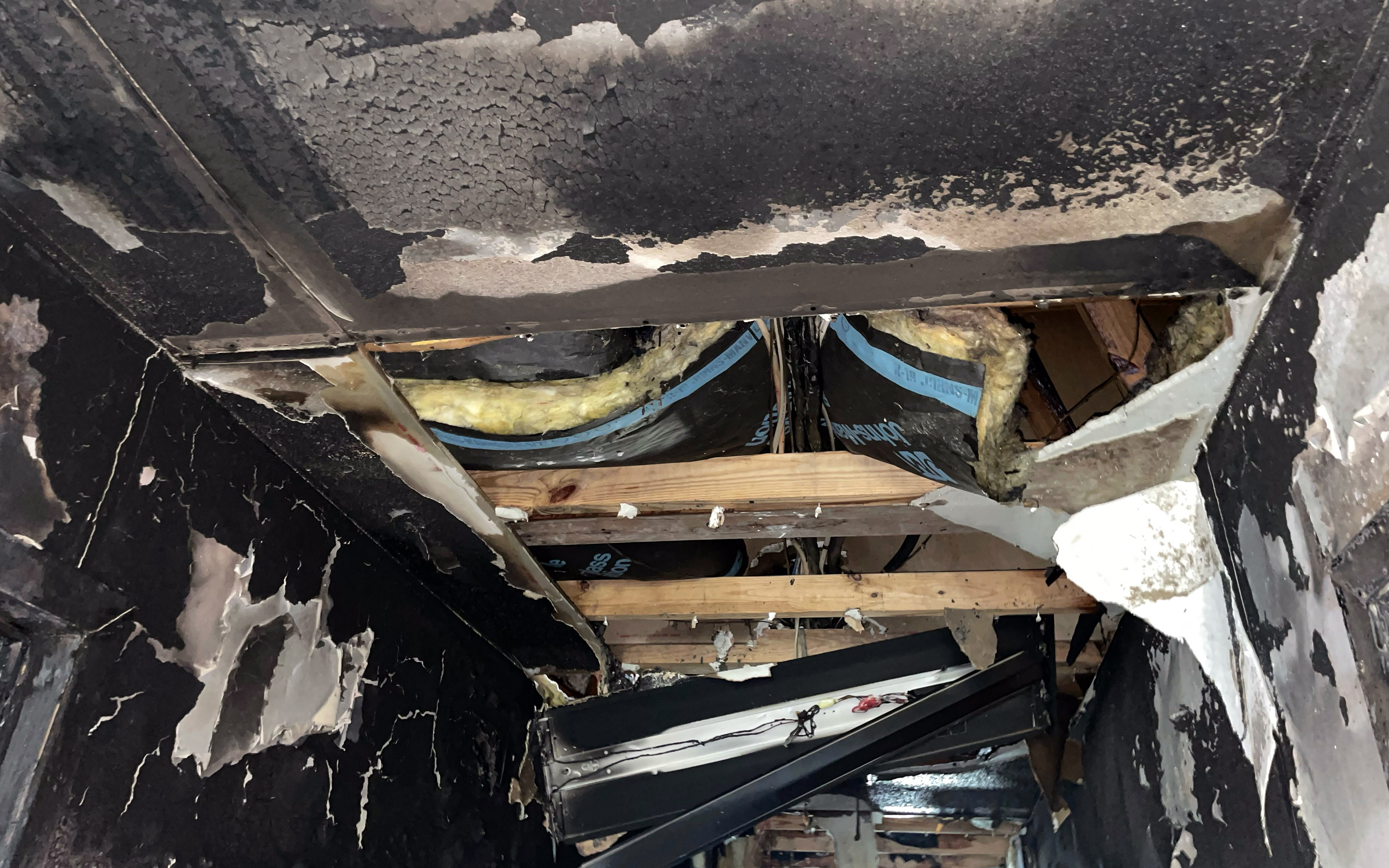 The fire damage was limited primarily to one apartment unit and the hallway, but most of the units in the building have severe water and smoke damage. With the extensive damage, it is likely the entire interior of the building will need to be gutted and replaced.