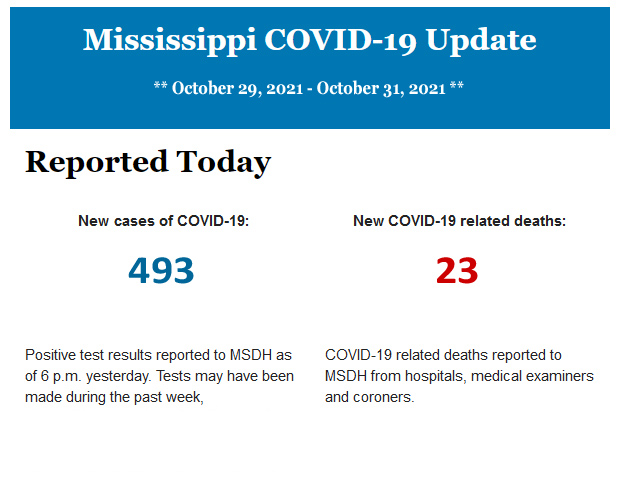 Listed below is the daily COVID-19 update for the state of Mississippi.