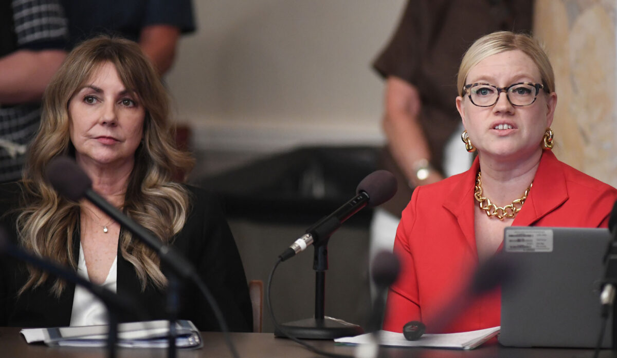 House Education Chairman Rob Roberson, R-Starkville (left) and Jansen Owen, R-Poplarville, listen as other legislators ask questions of U.S. Department of Health and Human Services Deputy Assistant Secretary for the Office of Early Childhood Development Laurie Todd-Smith and Lindsey Burke, deputy chief of staff for policy and programs at the U.S. Dept. of Education, during the legislative school choice subcommittee meeting at the State Capitol, Monday, Aug. 25, 2025 in Jackson. Credit: Vickie D. King/Mississippi Today