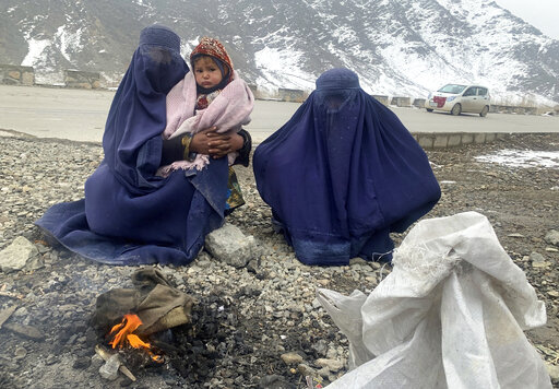 PUL-E-ALAM, Afghanistan (AP) — A flickering flame of paper, rags and random twigs is the only heat Gulnaz has to keep her 18-month-old son warm, barely visible beneath his icy blanket as she begs on a bitterly cold highway on the road to Kabul.