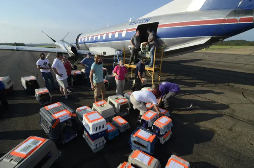 Volunteers from animal shelters across Mississippi and Louisiana that were affected by Hurricane Ida teamed up with Wings of Rescue to airlift 157 animals to shelters in Wisconsin and North Dakota, with a plane will of animals leaving the McComb-Pike County Airport on Tuesday morning.