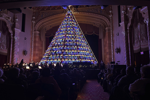 The Mona Shores Singing Christmas Tree, which features a 180-student high school choir and stands 15 rows tall, belted out 19 holiday tunes at a Muskegon theater this week and was set to perform two more shows on Saturday. The 67-foot-tall (20-meter-tall) tree is adorned with 25,000 LED lights and loads of greenery.