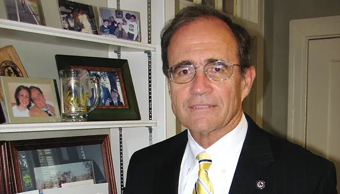 Robert Collins, far left, president of the Leflore County Board of Supervisors, makes a point during Tuesday’s meeting of the Greenwood Leflore Hospital Board. With Collins at the table are other Greenwood and Leflore County officials: from left, county Supervisor Reginald Moore, City Attorney Don Brock, City Council President Ronnie Stevenson and Mayor Carolyn McAdams. (By Tim Kalich)