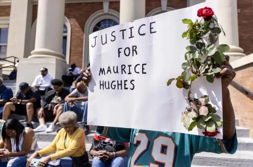 “This has left a hole in our hearts,” said Cassandra Teal, one of Hughes’ sisters who witnessed his death. “It wasn’t right what they (have) done.”