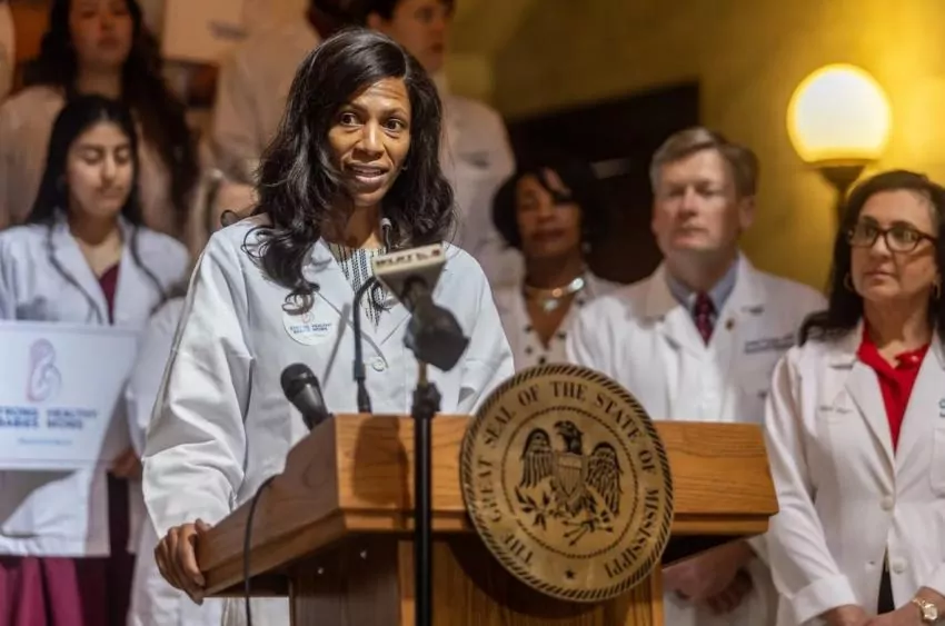 In a press conference hosted on the second floor of the Capitol, Mississippi doctors emphasized the importance of extending postpartum care in the state and at times spoke directly to the House, asking them to pass SB 2212 to extend Medicaid postpartum coverage from 60 days to 12 months.