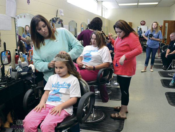 After meeting with the college president, the Garretts were whisked to the cosmetology school for pampering.