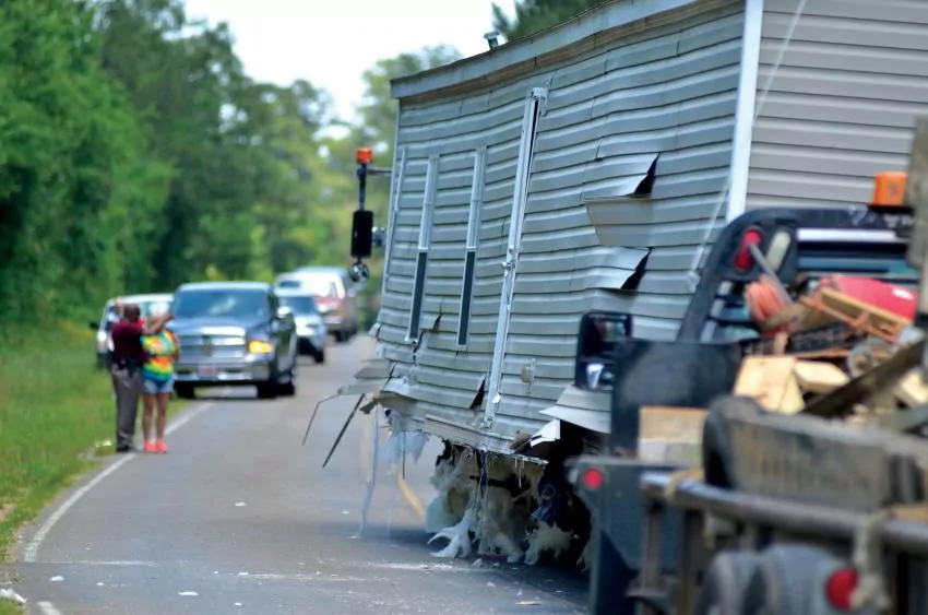 Bell said it’s unknown which motorist crossed the center line, although photos from the scene show the oversize load appeared to have been over the center line, which is typical for such loads. The accident also occurred at a slight curve, which also could have caused of the front left corner of the mobile home to protrude over the center line.