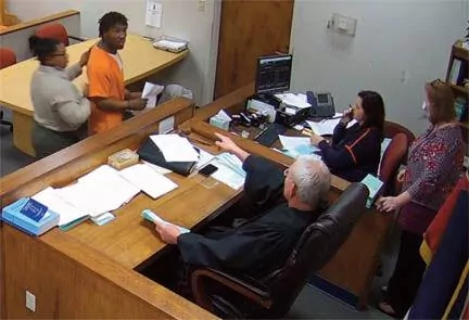 On Jan. 7, Southern District Justice Court Judge Aubrey Rimes was holding a hearing for Sidney Newsome, 27, of Magnolia, who was charged with domestic violence. Officials Friday watched a courtroom video that showed what ensued.
