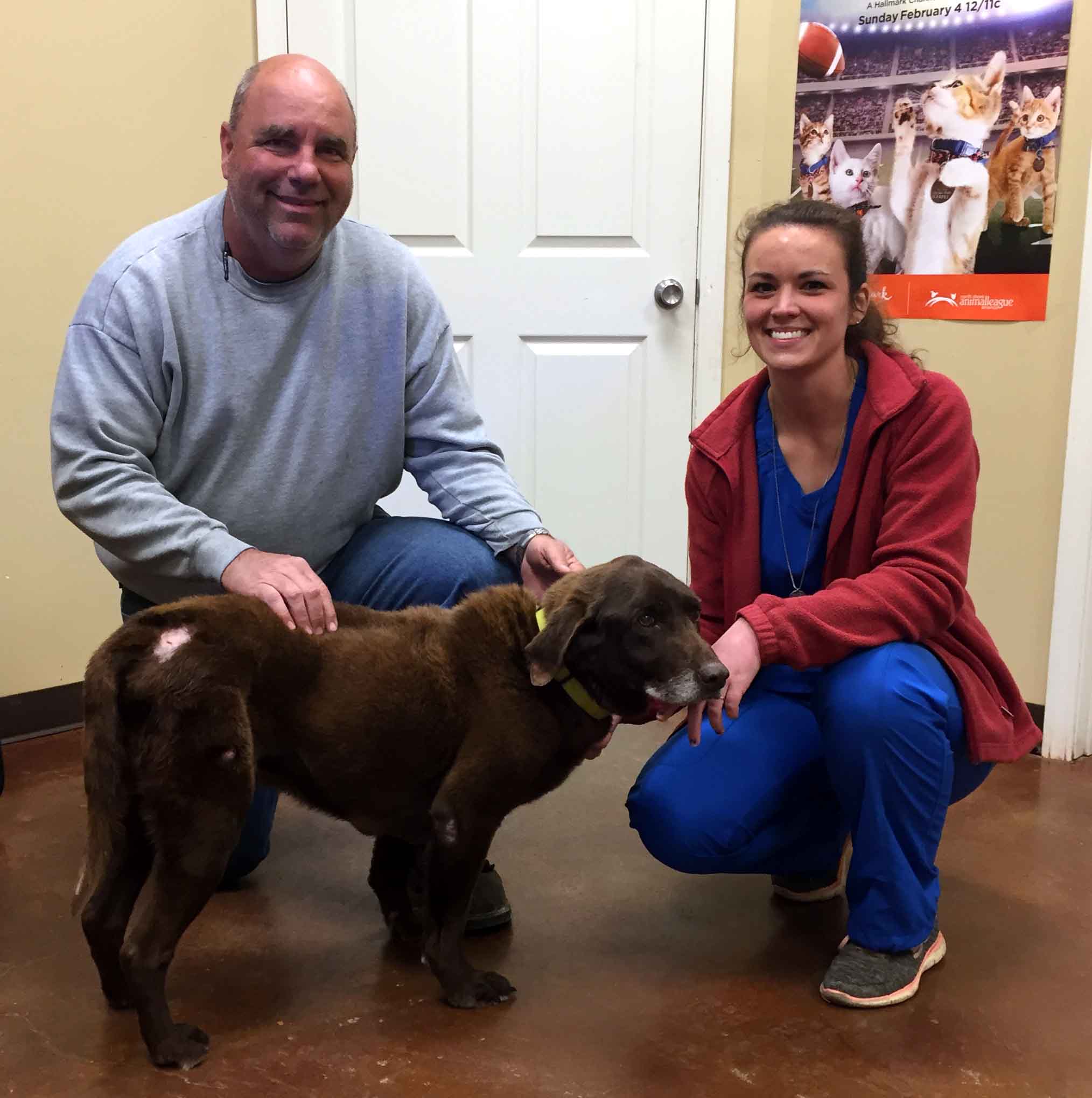 Mator, a chocolate lab, was found after a couple from Port Gibson saw him wandering the streets of Wilkinson County. The couple picked him up and took him to PALS on Tuesday, where the search for his family began.
