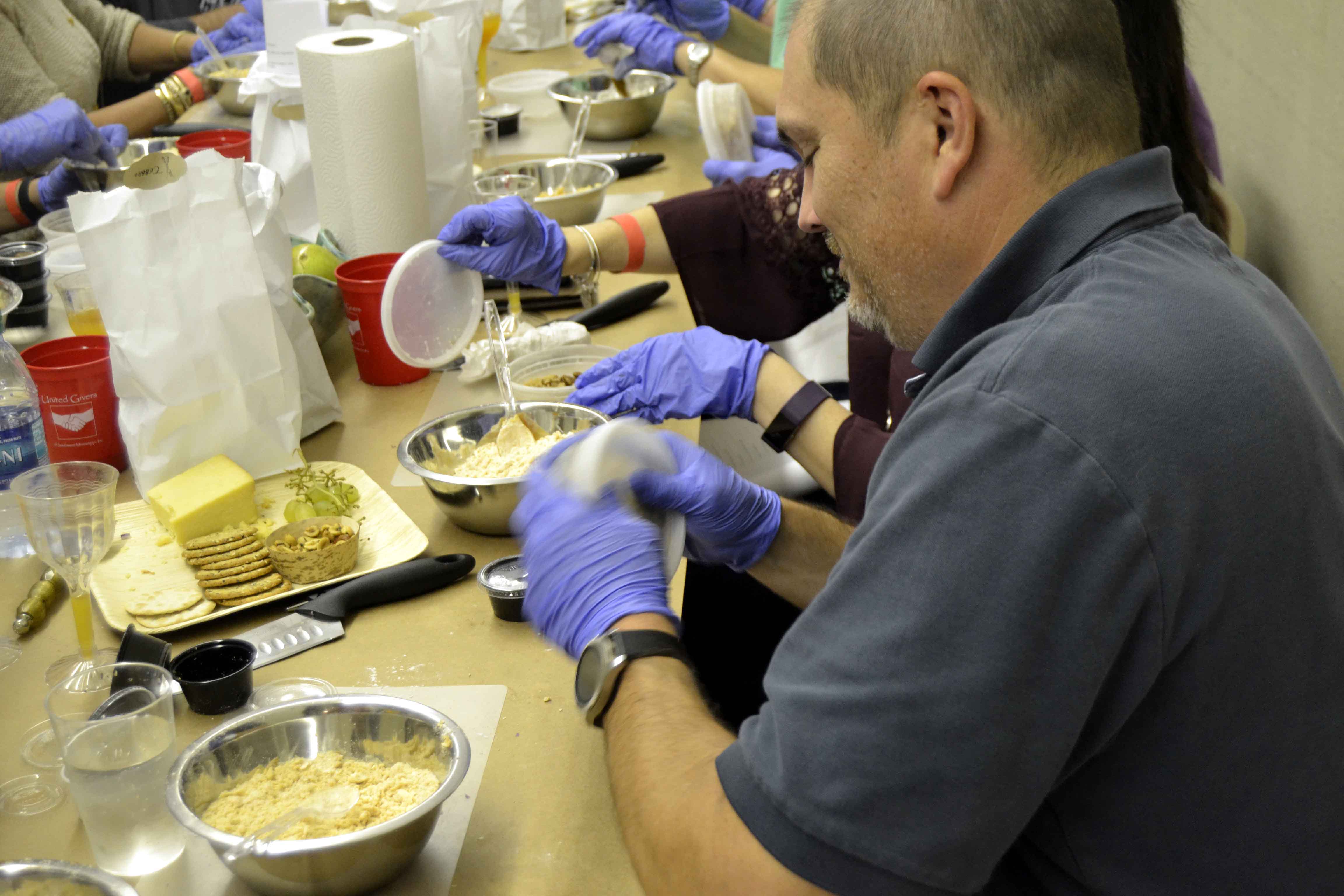 As participants prepared parts of the meal, United Givers board members would take the items food back and mix it all together.