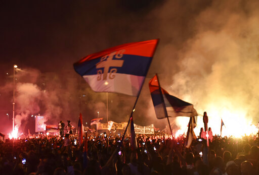 Illustrating the deep ethnic divide, thousands of people waving Serbian flags gathered in front of the main Serbian Orthodox church in Podgorica on Saturday to welcome the patriarch. Many were bused to the capital from Serbia.