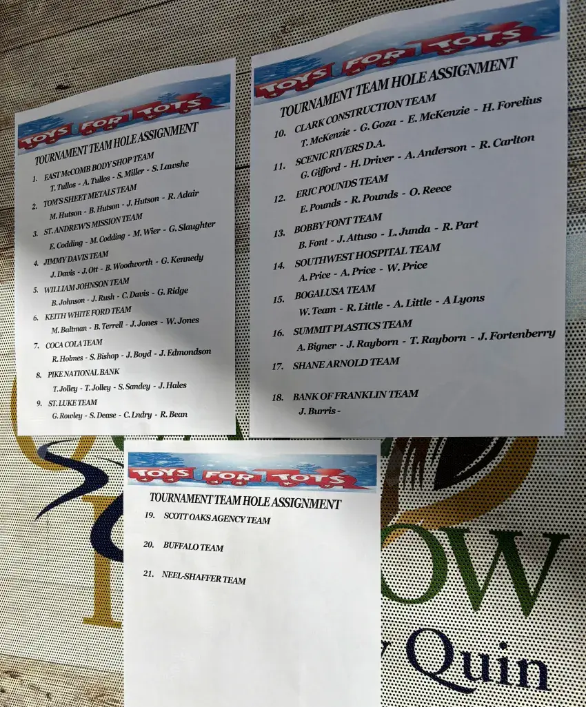 All proceeds from the $100 player entry fee go towards St. Andrew’s Mission to assist in the purchase of toys, clothing and other presents for foster children in the Pike and Lincoln County areas.