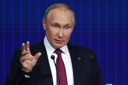 MOSCOW (AP) — Russian President Vladimir Putin on Thursday denied having any intentions of using nuclear weapons in Ukraine but described the conflict there as part of alleged efforts by the West to secure its global domination, which he insisted are doomed to fail.