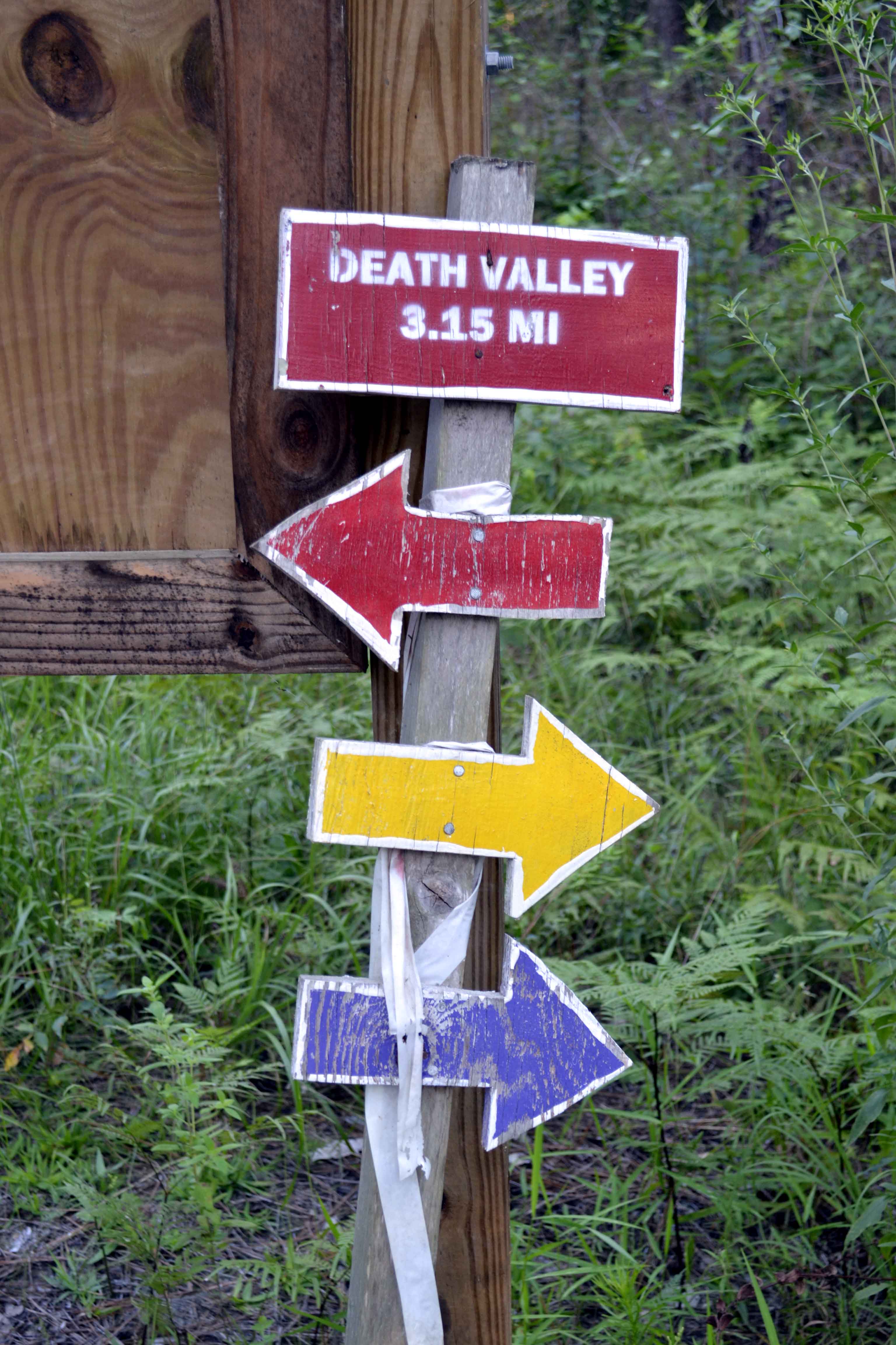 A cluster of colored arrows on a tree pointed in different directions. One of them said, “Death Valley.” Seemed appropriate.