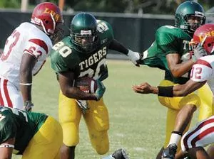 Powell scored both touchdowns for the Tigers. His rushing score came on the first Tiger possession. He skipped through a tackle at the 5-yard line and beat the War Eagles to the end zone to make it 6-0 after a missed extra point.