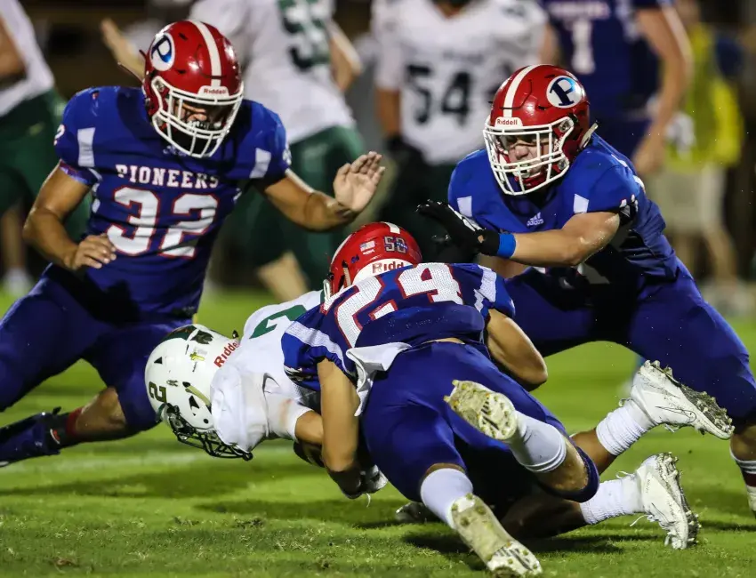 The Pioneers overcame a penalty inside the Wildcat 10 that backed them to the 17-yard line, and a two-yard loss, when quarterback Braxton Cooksey hit Brady Warner with an 18-yard pass to the 1. The Silliman defense rose up, however, and held the Pioneers out of the end zone when the home team tried a rush up the middle.
