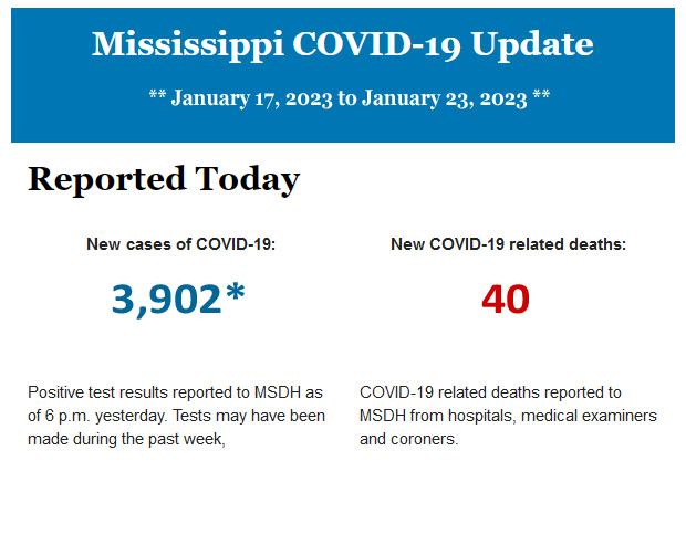 *New COVID-19 positive test results reported to MSDH for January 17 - January 23.