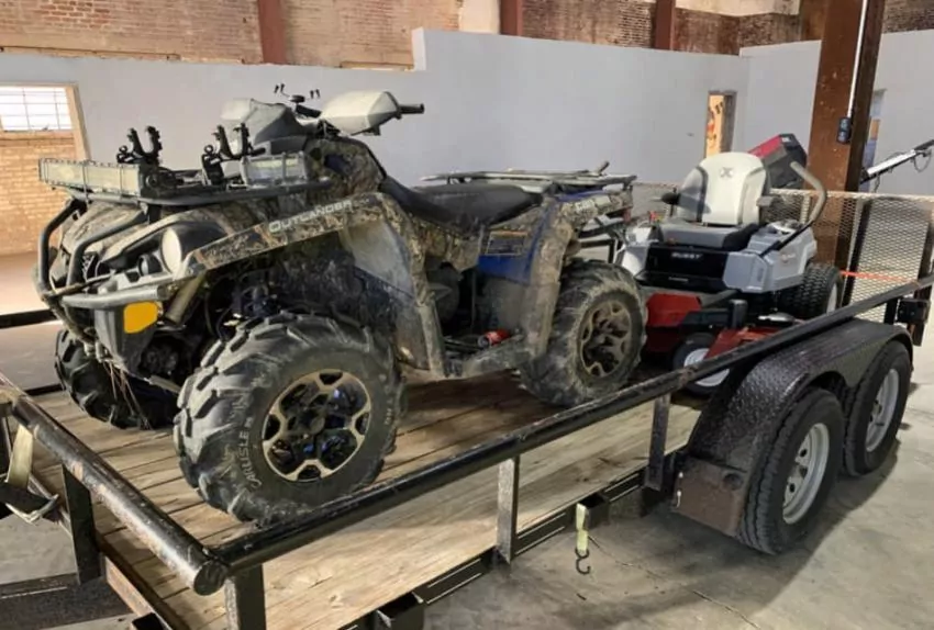 As a result of the search, numerous stolen items were recovered including the stolen plane engine, a John Deere tractor, trailers, four-wheelers, ATV’s, lawn mowers, welding machine, ditch witch trencher, fuel tanks and a commercial grade bush hog, along with other additional items. One arrest was made during the search warrant execution. This is an ongoing investigation, with additional arrests expected.