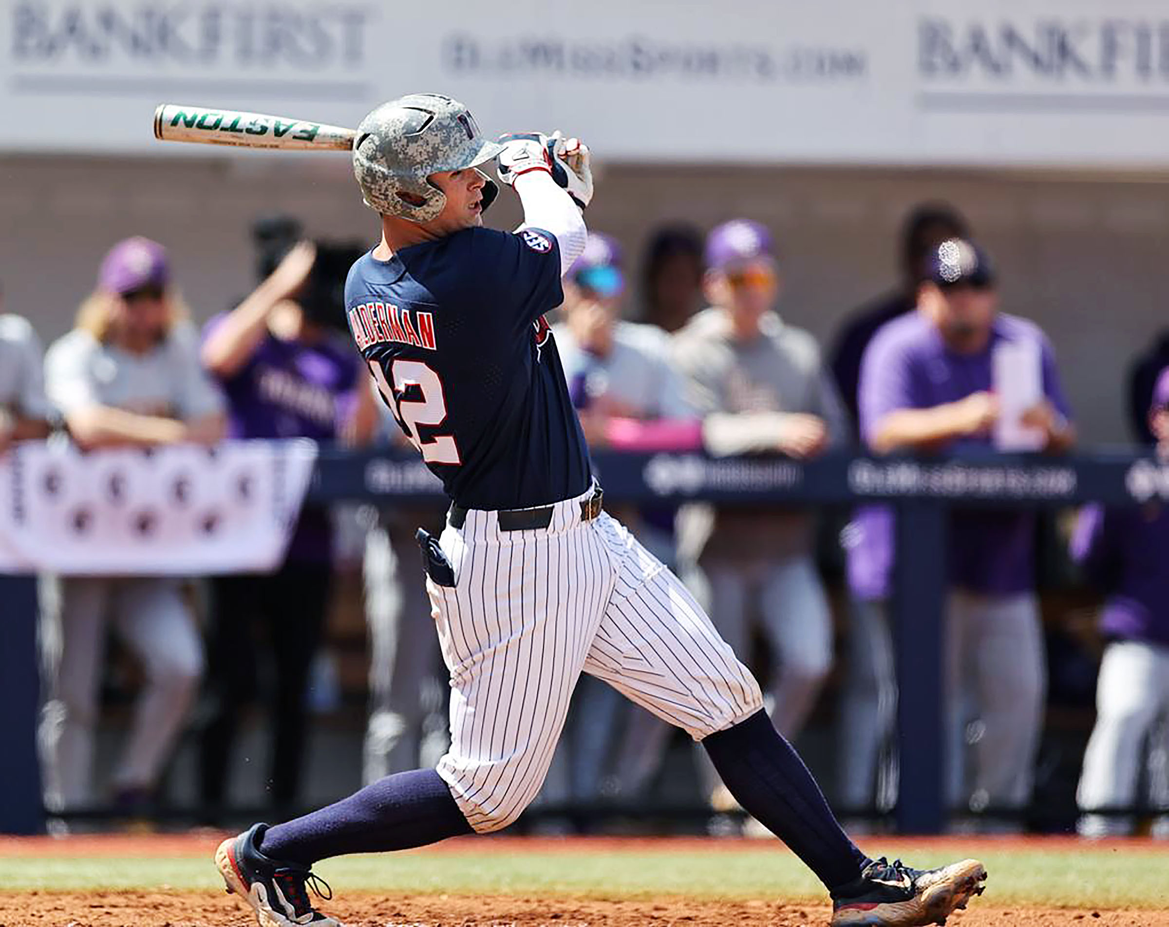 The Rebels slugged three home runs and struck out 13 Tigers, but surrendered five home runs on a windy night at Taylor Stadium. Kemp Alderman, Jacob Gonzalez, and TJ McCants each hit a long ball as McCants drove in three runs and Calvin Harris scored three times.
