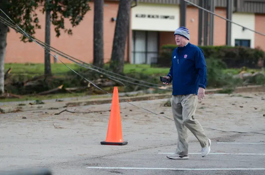 Bishop said he was thankful that the storm came through during spring break, when about 60 students were on campus for baseball, basketball and softball games.