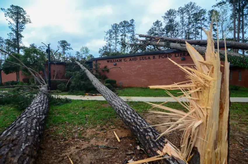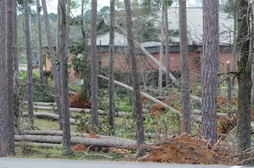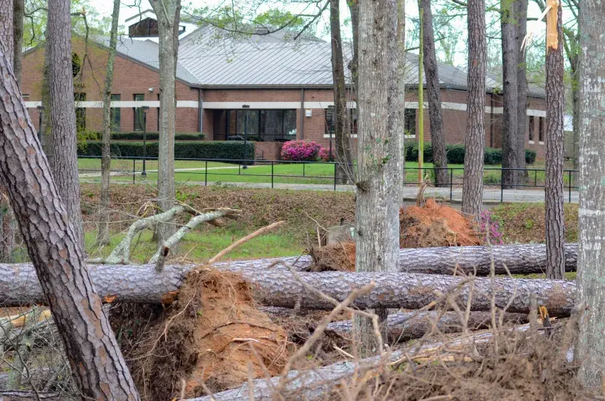 Storm damage to the campus of Southwest Mississippi Community College was evident in the light of day Thursday morning after powerful winds from what college officials feared could have been a tornado swept through Wednesday night.
