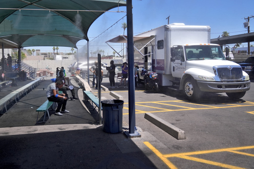 PHOENIX (AP) — Alfred Handley leaned back in his wheelchair alongside a major Phoenix freeway as a street medicine team helped him get rehydrated with an intravenous saline solution dripping from a bag hanging on a pole.