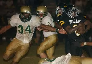 Just before halftime with the score knotted at 0, Eagle backup quarterback Isaac Tate went deep to regular starting quarterback Tevin Martin for a 25-yard touchdown pass in double coverage.