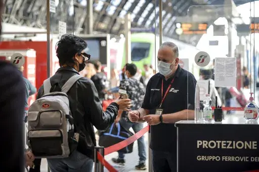 ROME (AP) — Police outnumbered demonstrators at several of Italy's main train stations as COVID-19 vaccination or tests became mandatory Wednesday for long-distance travel within the country. Threats by some of the rule's opponents to block railroad tracks apparently fizzled.