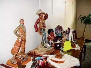 A collection of Lois’ work — painted ceramic Indian busts, totem poles, even Western cowboys — are on display at the McComb Library through the end of the month.