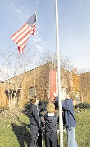 When Ben, Wyatt and Jack Lampton hoisted an American flag on the pole outside St. Alphonsus Elementary School this week, they did it in honor of their father.