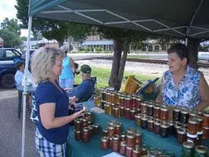Klacy Howze of Walker, La., examined the brightly colored jars of jams and jellies at Joy Alexander’s booth at the Magnolia Farmer’s Market last Saturday and asked about some favorites.