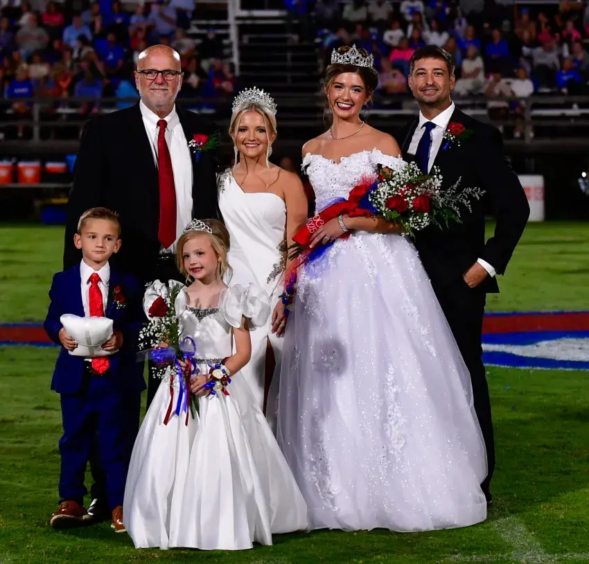 Lainey Sterling, second from right, was crowned Parklane Academy’s 2025 homecoming queen Friday night. She’s pictured with, from left, Parklane Administrator Jack Henderson 2024 queen Ella Wigginton, her father Wesley Sterling, crown bearer Stone Dustin and flower girl Saylor Polk.
