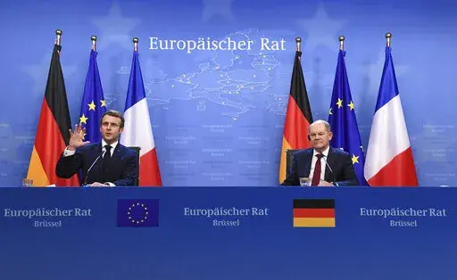 BRUSSELS (AP) — The leaders of the European Union’s two most important nations faced reporters together during a joint news conference early Friday, a show of unity at the end of the EU's final summit of the year.