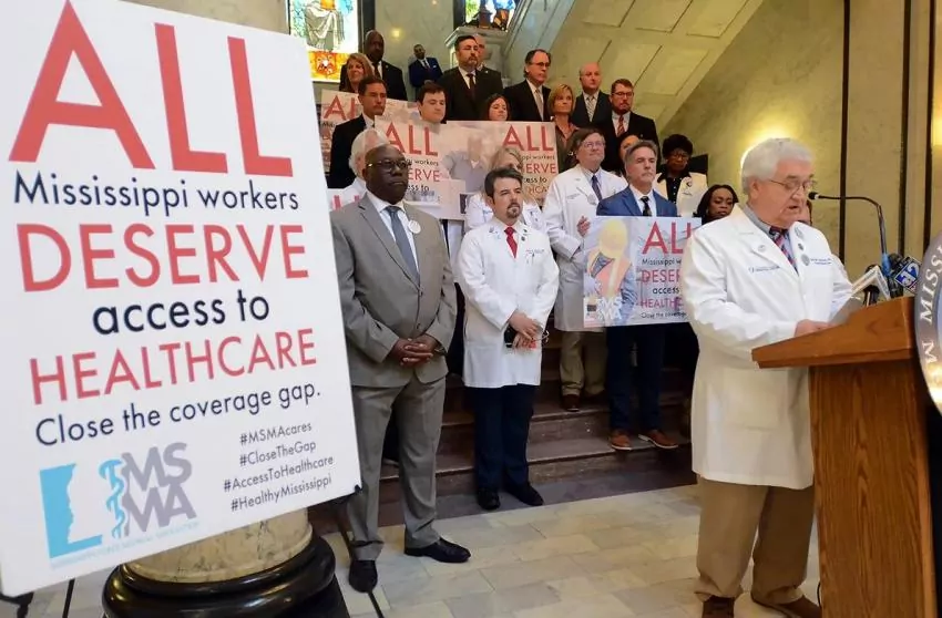Several dozen doctors and health care leaders gathered at the Capitol Thursday to advocate for Medicaid expansion and call on Senate leaders – who have remained quiet on the House expansion bill that sits in their chamber – to close the state’s health care coverage gap.