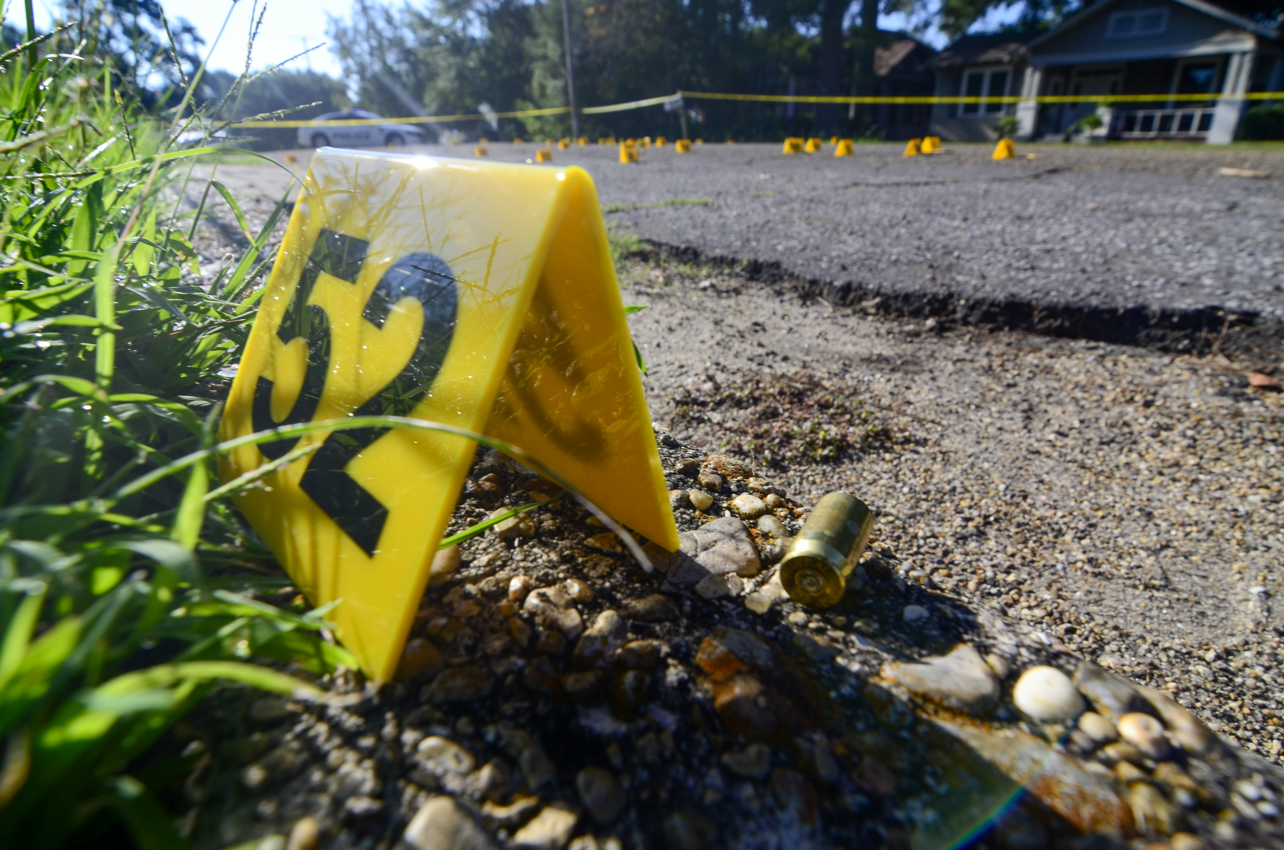 One car, a Mercury Grand Marquis, had two bullet holes near the driver’ door, while another, a Nissan Altima, sustained a gunshot to its windshield and had two flat tires. A Chevrolet SUV also had a flat tire after the gunfire subsided.