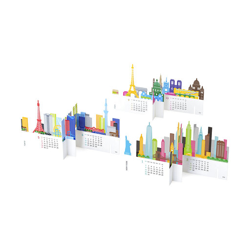 A great-looking desk calendar called “City,” at MoMA from Japanese studio Good Morning, features 3-D cityscapes of Tokyo, New York and Paris. Interlock the shapes on the provided display stand to showcase the 12 monthly calendars and the skylines.