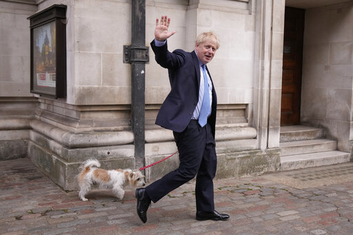 Johnson, who voted at a polling station near his 10 Downing St. residence — accompanied by his dog, Dilyn — said in a social media video that “it’s Conservatives who deliver, Conservatives who get the bins collected."